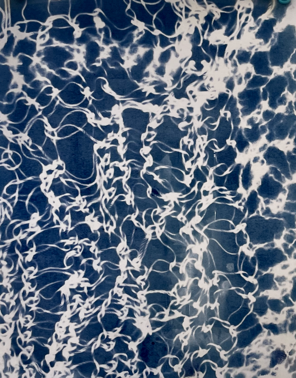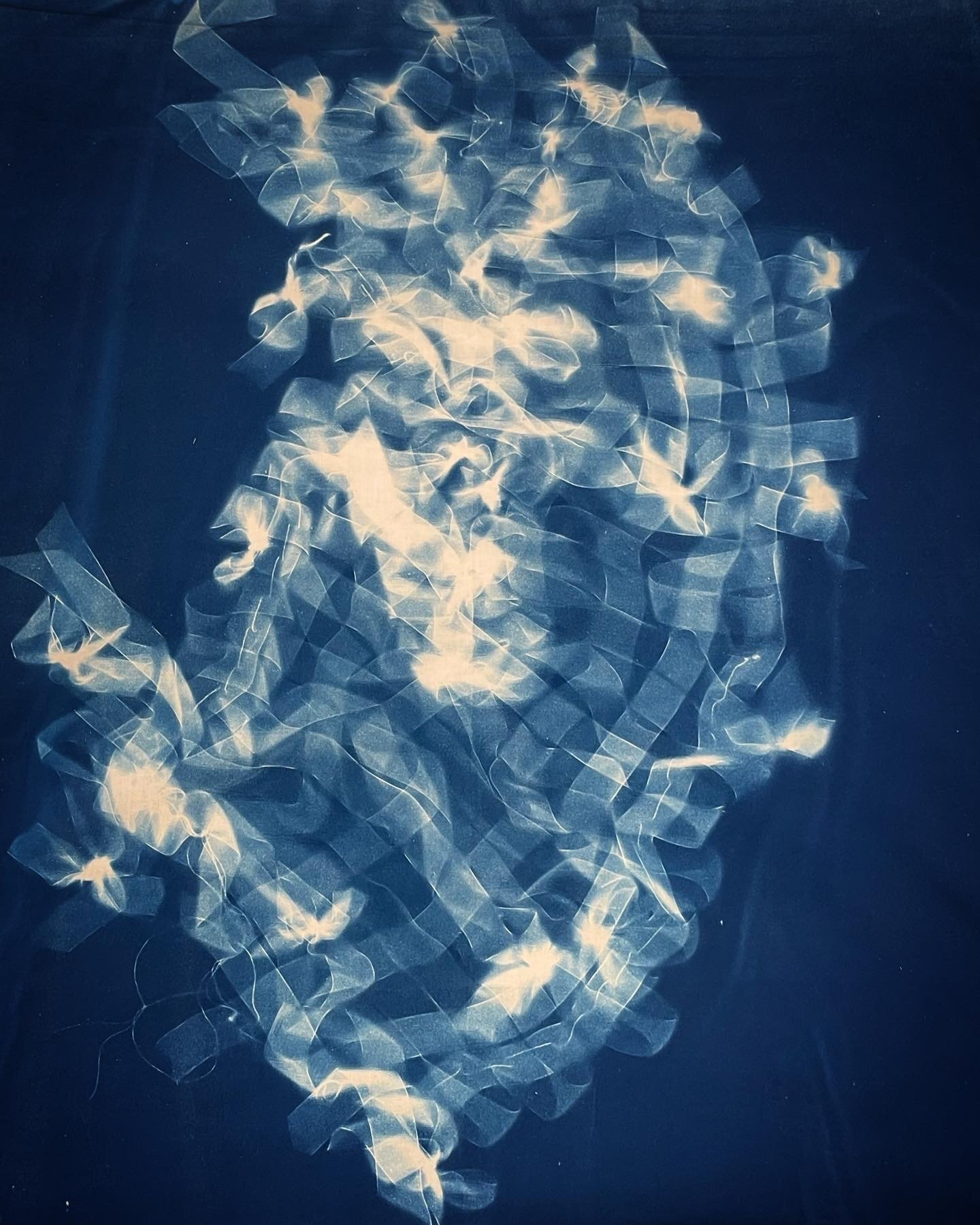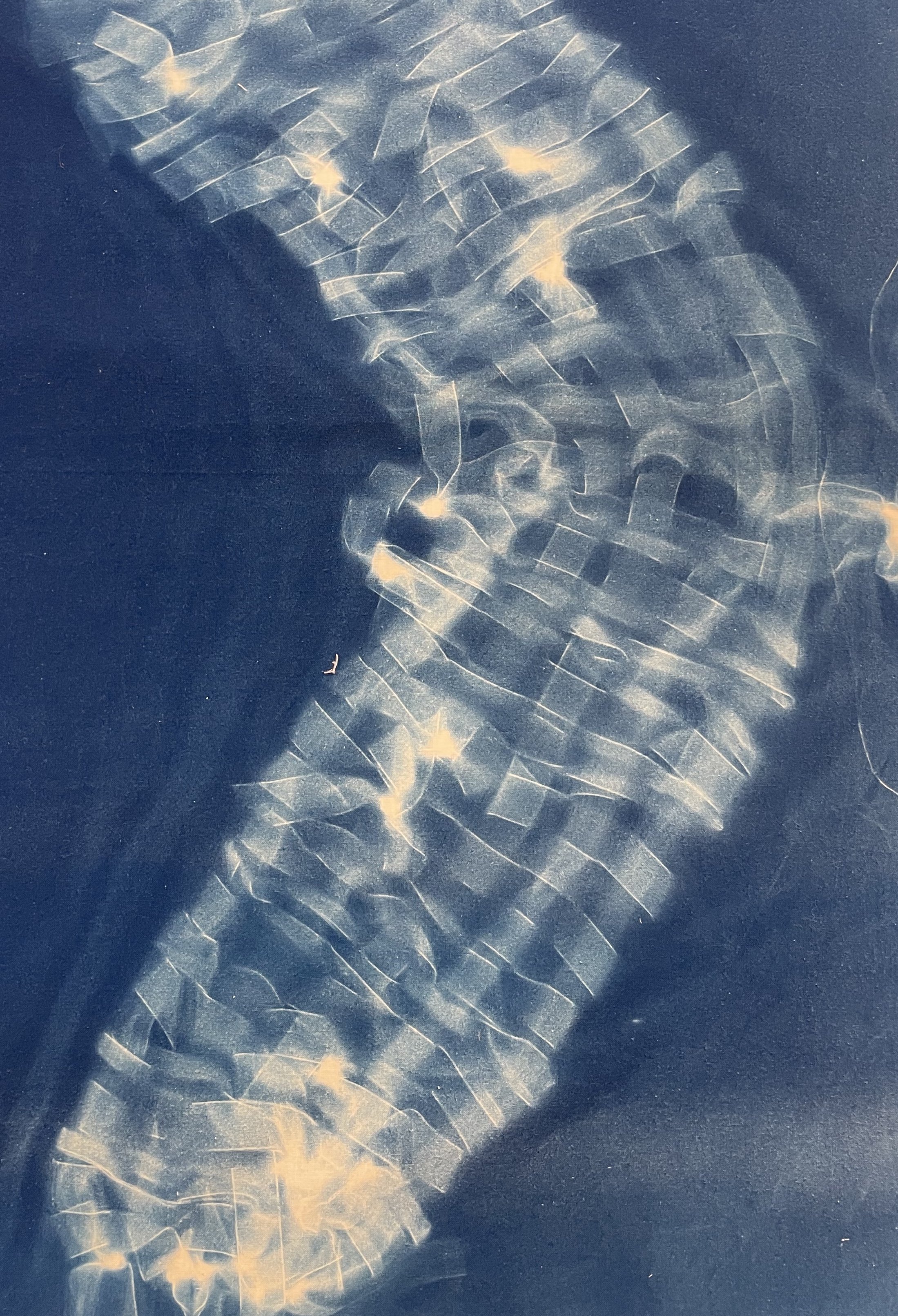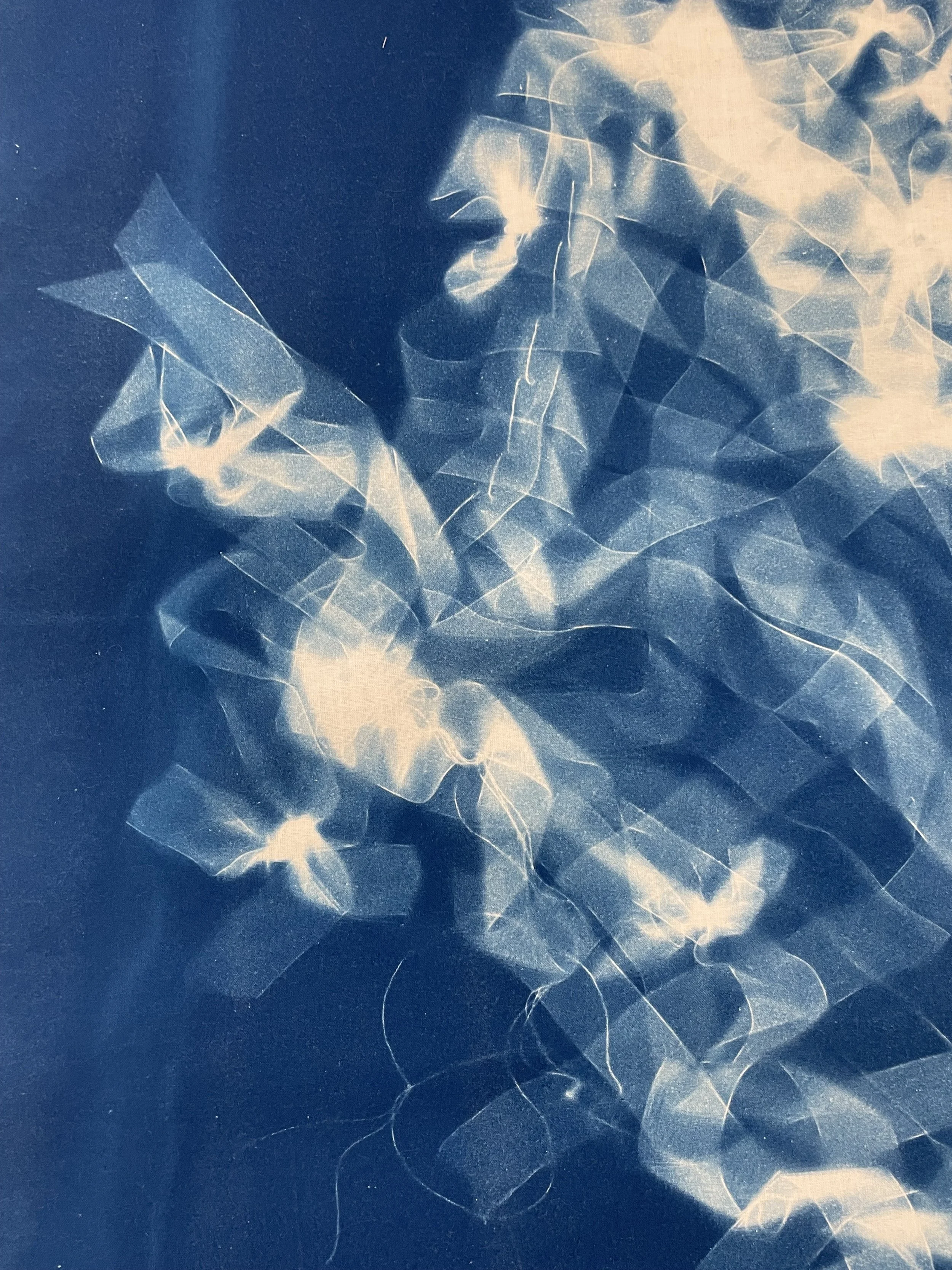 cyanotype on cheesecloth.